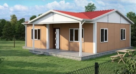 Доставка: • Метална конструкция • Панели от бетопан и стиропор • Метална покривна конструкция • Топлоизолация в подпокривното пространство. • Покривно покритие - Гофриран покривен термопанел с покритие „без конденз”; • Външна блиндирана врата • Вътрешни интериорни врати • PVC 3 камерна дограма със стъклопакет • Ел. инсталация • Ел. табло за къщата • Ключове, контакти, осветителни табла • Обзавеждане за баня • Доставка на къщата до мястото за монтаж