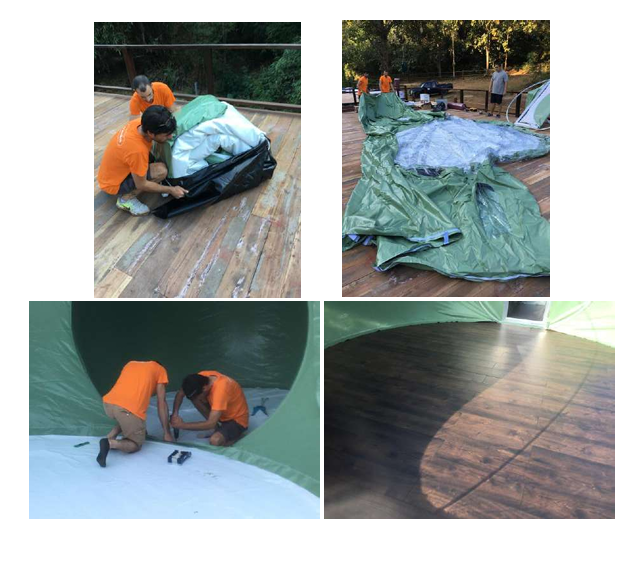 Процесът на сглобяване на един балон, след като се поставят настилката и инсталациите, обикновено отнема между 2 и 4 дни в зависимост от модела и обстоятелствата. Демонтажът може да се извърши за един ден.